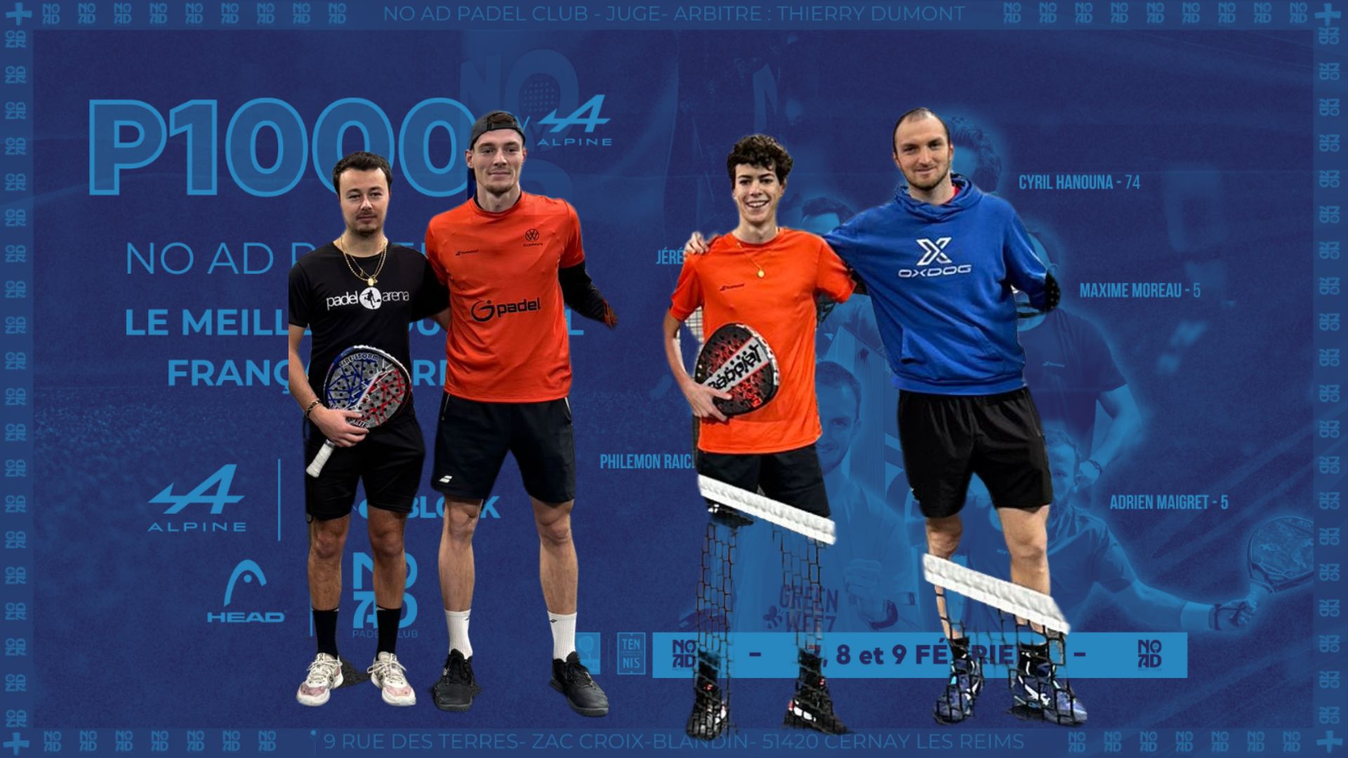 La finale di P1000 Nessuna pubblicità Padel Club è ormai noto e metterà le teste di serie l’una contro l’altra Jeremy Garcia / Yanis Muesser (TS1) à Philémon Raichman / Olivier Guy de Chamisso (TS2).