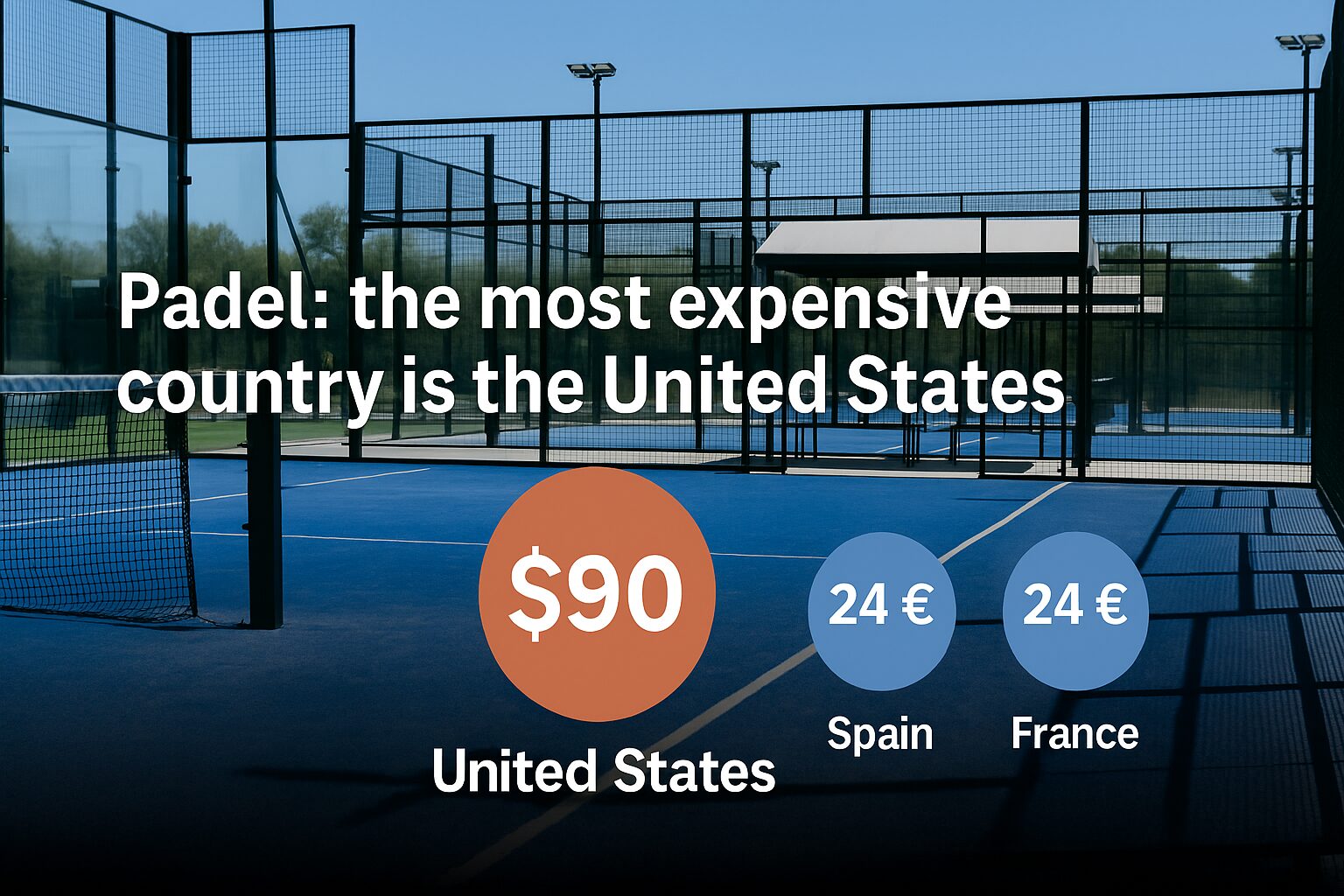 Gli ultimi dati internazionali confermano ciò che molti sospettavano: gli Stati Uniti dominano ampiamente la classifica dei prezzi medi per la prenotazione di un campo da padel. Con un prezzo medio di 90 € per un campo coperto et 60 € per un campo all’aperto, il mercato americano supera tutte le altre nazioni, a volte in proporzioni impressionanti.